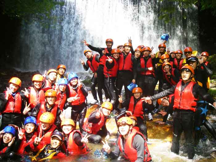 滝を登ったり、泳いだりして目的地の霧降の滝へと向かっていきます。