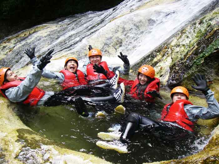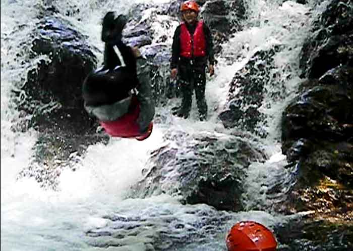 帰りは、今まで登った滝に飛び込んだり、流されたりと、